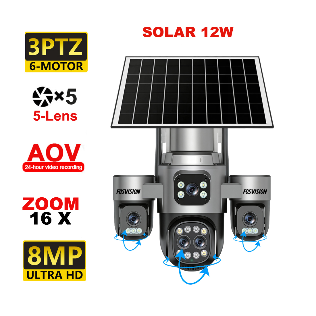 - Pan 355 °,Tilt 90 °,3PTZ 6Motor;